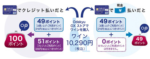 その名前の通り、小田急グループでの利用優待はもちろん、小田急ポイントサービス加盟店400以上あり、小田急ポイントカード【OPクレジット】を提示するだけでお得に「お買い上げ・ご利用ポイント」が貯まります。